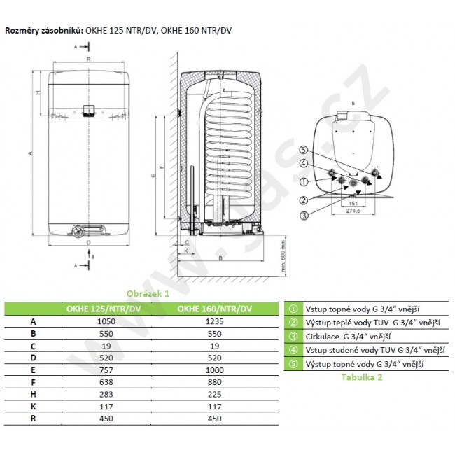 Бойлер непрямого нагріву стаціонарний OKH 160 NTR/DV (Drazice) — це водонагрівач для приготування гарячої води, який працює від системи опалення (газового, твердопаливного або електричного котла).