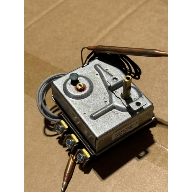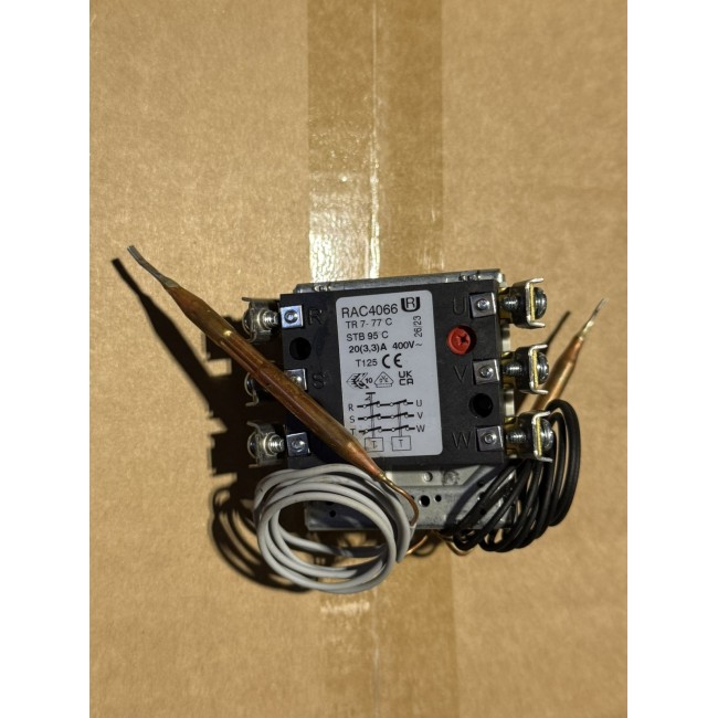 Регульований захисний (аварійний) 3-фазний (3-полюсний) комбінований термостат (комбістат) типу RAC фірми Дражице, температура спрацьовування термозахисту - 95 ° C для промислових електроводонагрівачі на 200 ... 300 літрів фірм Атлантик, Пасифік, терморе, Арістон, Шафото , Фагор, Де Дитриш, Дражице та інших